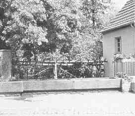 Ortsmitte mit Dorfbrunnen und früherem Haus "Köhler", später Zaun.