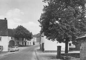 Der alte Dorfbrunnen 1964 zwischen Milchhäuschen und alter Linde